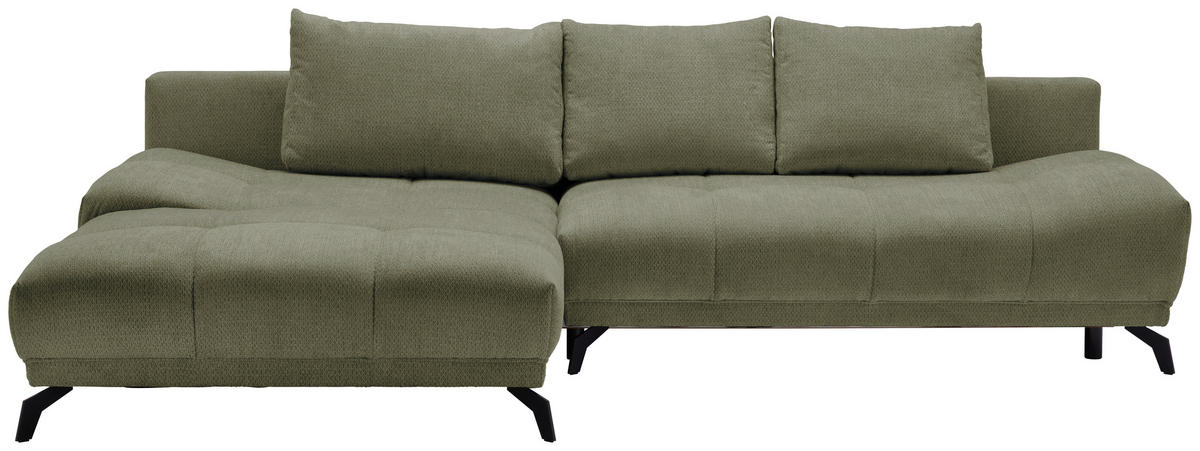 Genießen Sie Ihr Rendezvous mit der wohligen Unbeschwertheit des Seins auf diesem olivgrünen Ecksofa mit Chenille-Bezug!