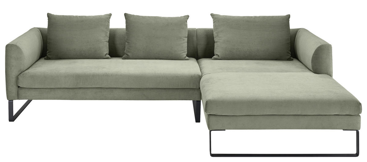 Gönnen Sie sich mit diesem olivgrünen Ecksofa mit Feincord-Bezug ein famoses Upgrade für Ihr geliebtes Heim!
