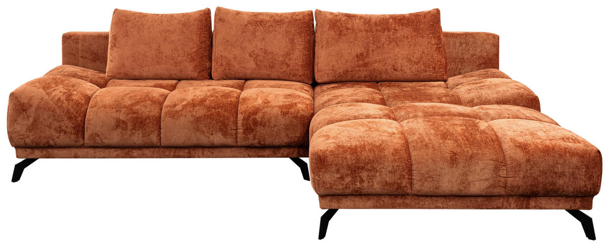 Hom`in ECKSOFA Rostfarben Chenille Rückenkissen, Bettkasten, Schlaffunktion, Rücken echt