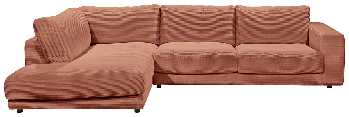 Genießen Sie Ihr Rendezvous mit der wohligen Unbeschwertheit des Seins auf diesem rostroten Ecksofa mit Cord-Bezug!