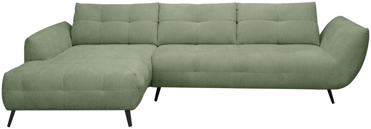 Rein in die Komfortzone: Dieses salbeigrüne Ecksofa mit Chenille-Bezug entführt Sie auf ein traumhaftes Terrain zum geruhsamen Durchatmen!