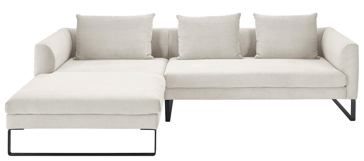 Ein Key-Piece, das Ihren Erwartungen gerecht wird: Dieses weiße Ecksofa mit Feincord-Bezug tut einiges fürs individuelle Wohnglück!