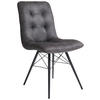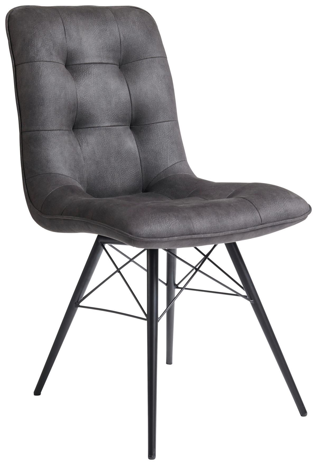 Dieser Stuhl in Dunkelgrau sticht mit seinem rauen Look heraus. Eine Mikrofaser-Oberfläche in Dunkelgrau mit Steppung verleiht dem Möbel einen Touch vom Factory-Ambiente. In Kombination mit den 4 schwarzen Beinen aus Eisen bekommt das Möbel seinen markanten Charakter.