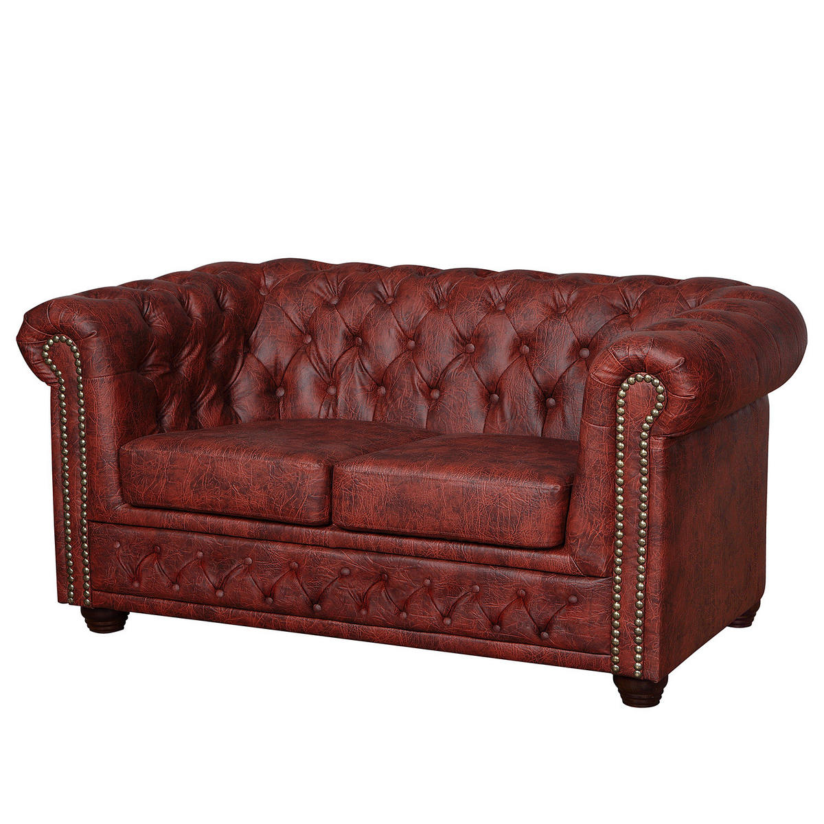 2-SITZER SOFA - Bordeaux/Dunkelbraun, Holz/Birkenholz (148/72/86cm) - home24