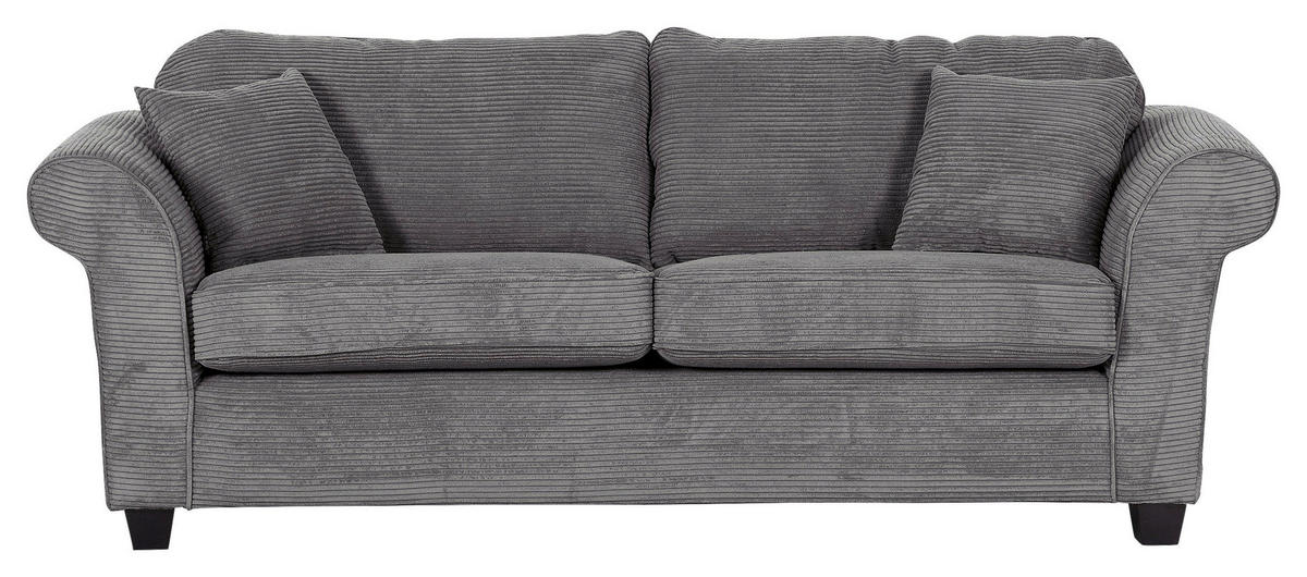 Eine Sonderportion Wohnglück schenkt Ihnen dieses dunkelgraue 3-Sitzer-Sofa mit Cord-Bezug. Greifen Sie zu!