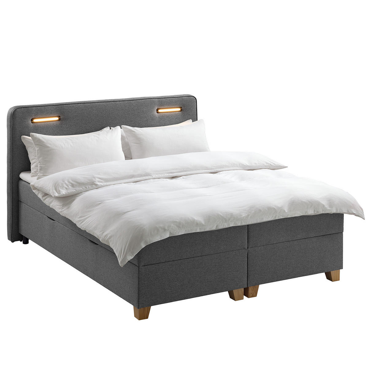 Dieses Boxbett im Modern Style bietet luxuriösen Schlafkomfort und smarte Funktionen. Der integrierte Stauraum und die Beleuchtung im Kopfteil sorgen für maximale Funktionalität und eine zeitgemäße Ästhetik.