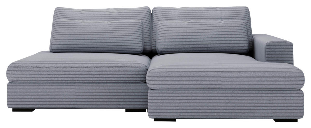 Als treue Begleitung für wonnige Time-outs daheim gesellt sich dieses blaugraue Ecksofa mit Cord-Bezug gerne zu Ihnen!