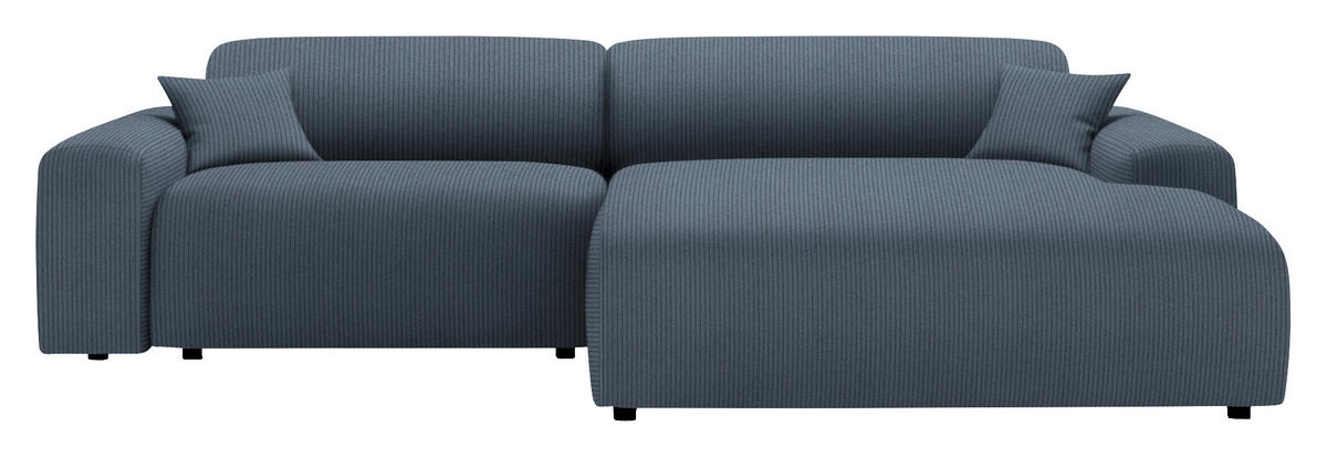 Gönnen Sie sich mit diesem blaugrauen Ecksofa mit Velours-Feincord-Bezug ein famoses Upgrade für Ihr geliebtes Heim!