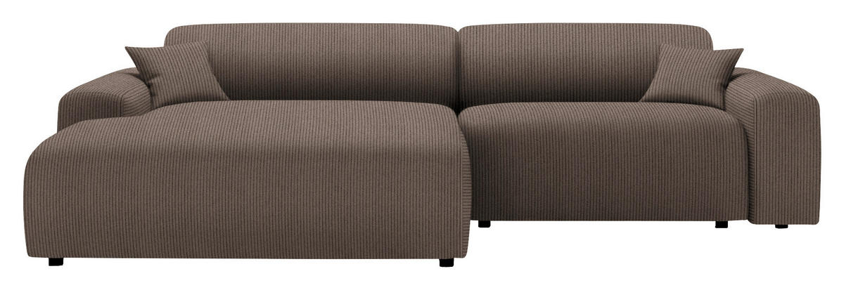Können Sie sich etwas Besseres vorstellen als auf diesem braunen Ecksofa mit Velours-Feincord-Bezug alles um sich herum zu vergessen?