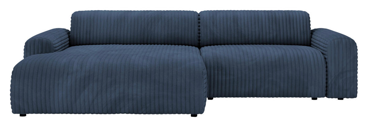 Rein in die Komfortzone: Dieses dunkelblaue Ecksofa mit Cord-Bezug entführt Sie auf ein traumhaftes Terrain zum geruhsamen Durchatmen!