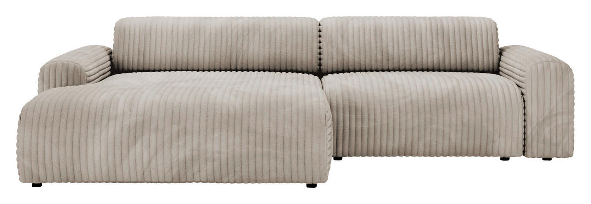 Eine Sonderportion Heimeligkeit schenkt Ihnen dieses greige Ecksofa mit Cord-Bezug. Greifen Sie zu!