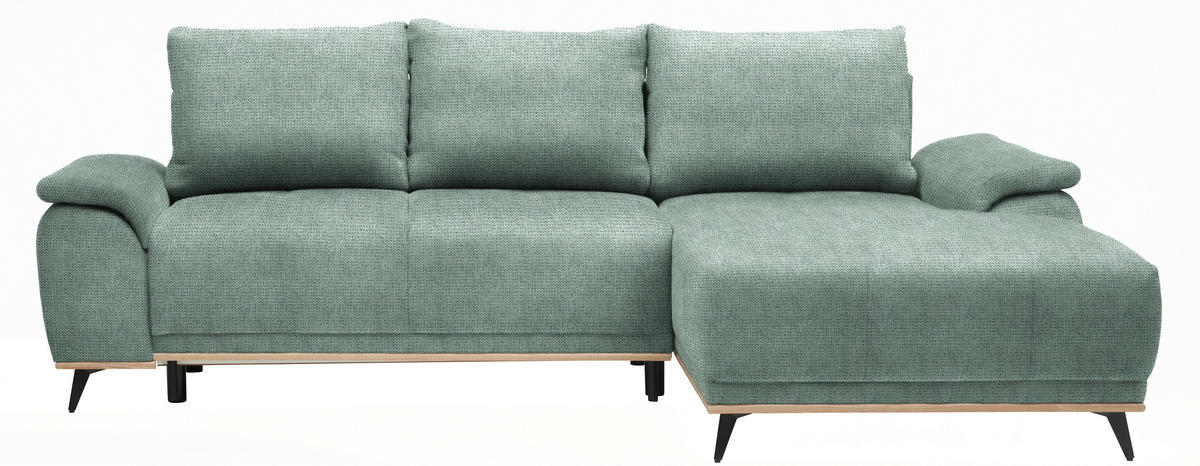 home24 ECKSOFA Grün Chenille Rückenkissen, Schlaffunktion, Rücken echt, Stauraum