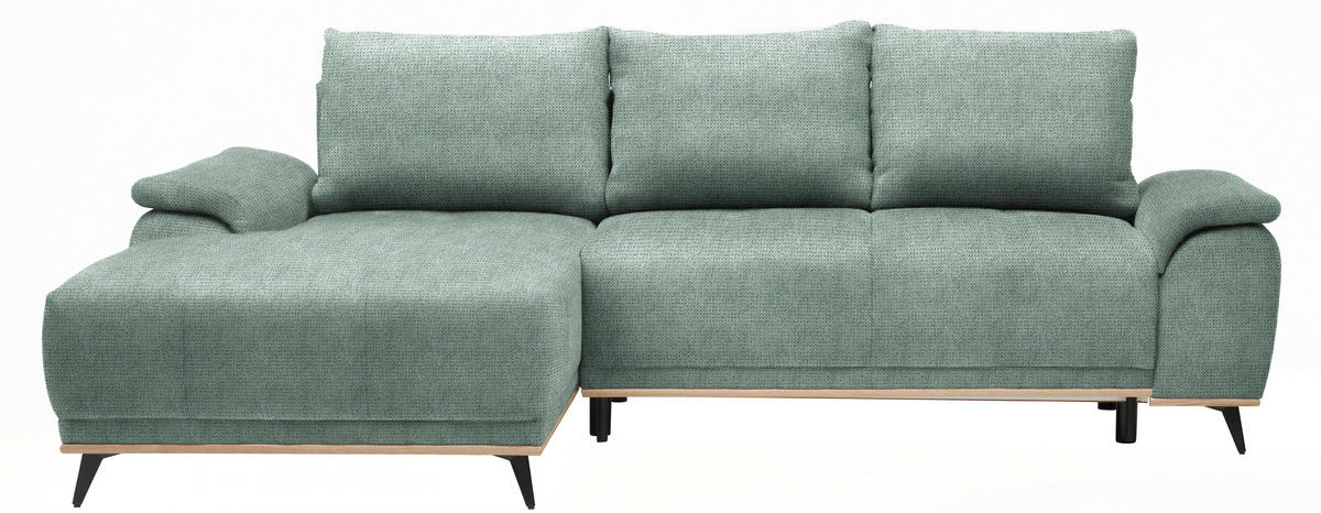 home24 ECKSOFA Grün Chenille Rückenkissen, Schlaffunktion, Rücken echt, Stauraum