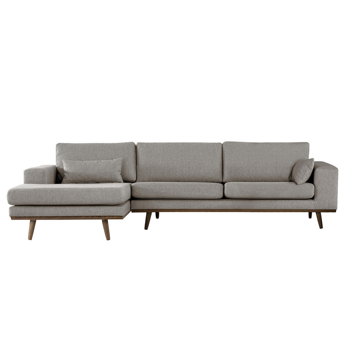 ECKSOFA mit Longchair - Eichefarben/Graubraun, Eichenholz/Textil (281/153cm) - home24