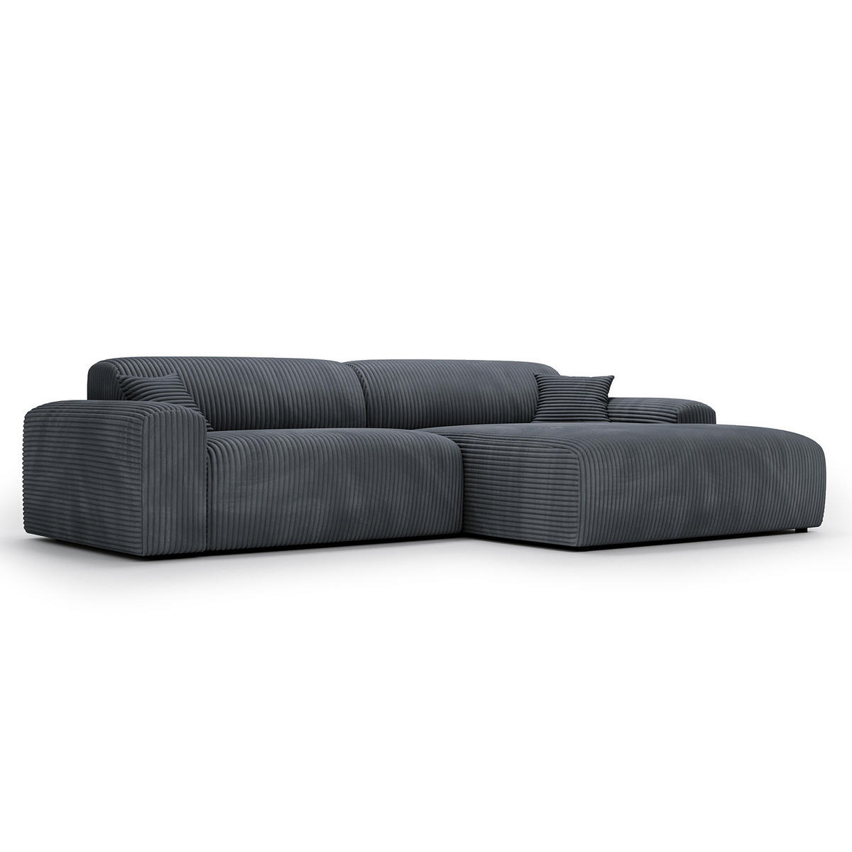 ECKSOFA mit Longchair - Cord - Blaugrau/Schwarz, Kunststoff/Textil (284/178cm) - home24home24