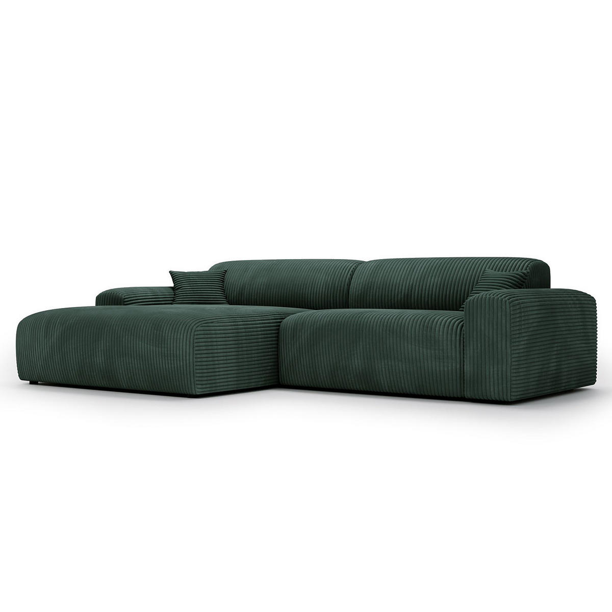 ECKSOFA mit Longchair - Cord - Schwarz/Grün, Kunststoff/Textil (284/178cm) - home24home24