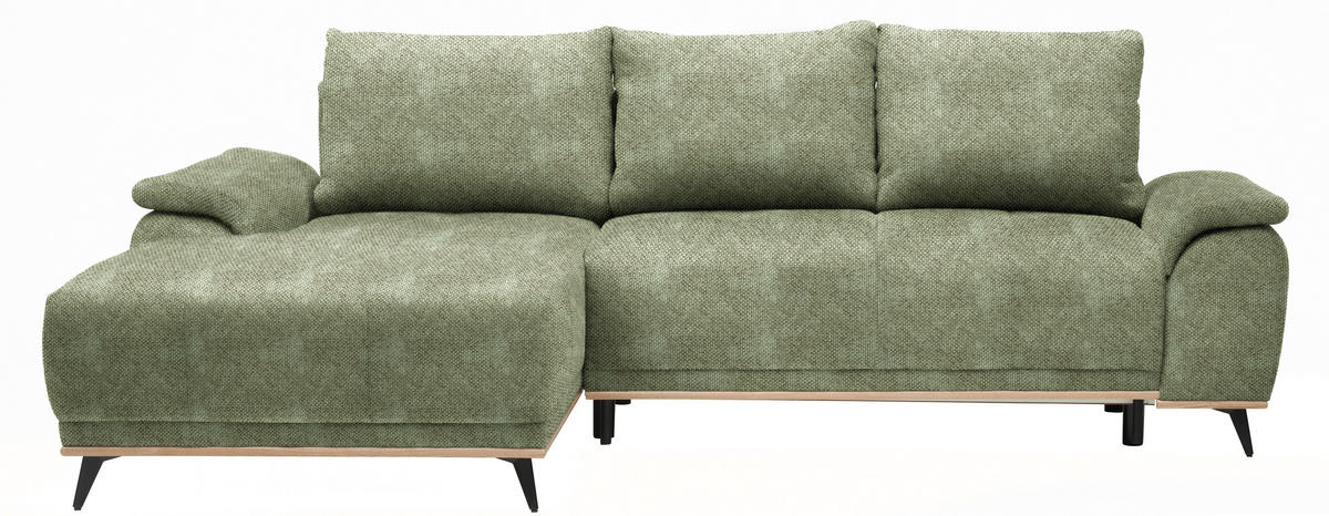 home24 ECKSOFA Olivgrün Struktur Rückenkissen, Schlaffunktion, Rücken echt, Stauraum