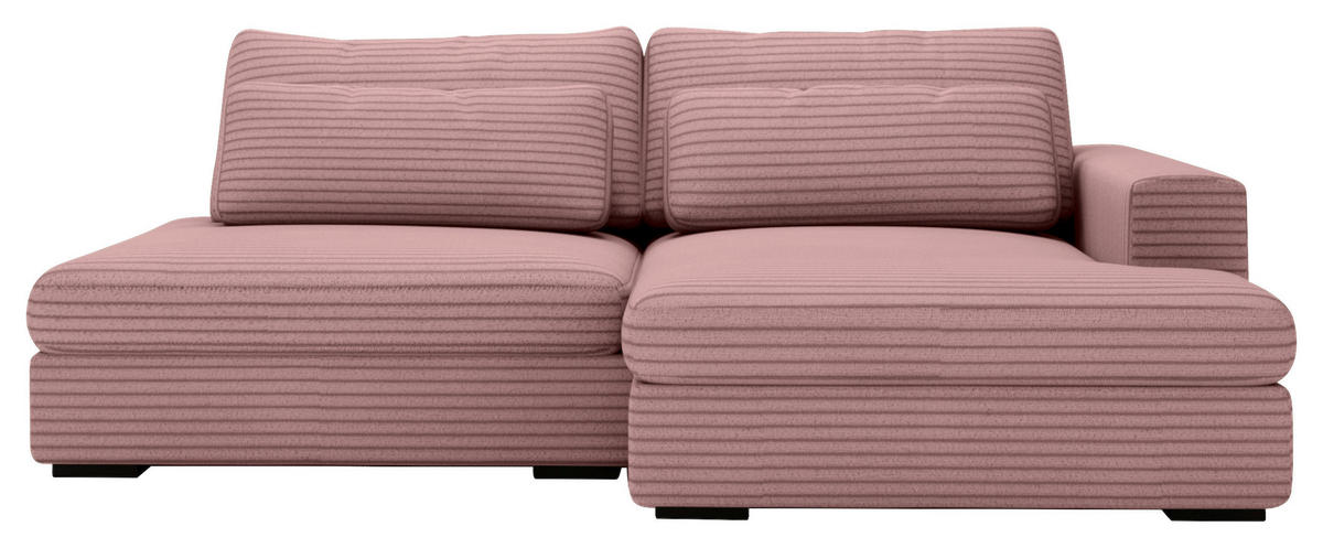 Wenn dieses rosafarbene Ecksofa mit Cord-Bezug bei Ihnen einzieht, übernimmt Behaglichkeit das Kommando!