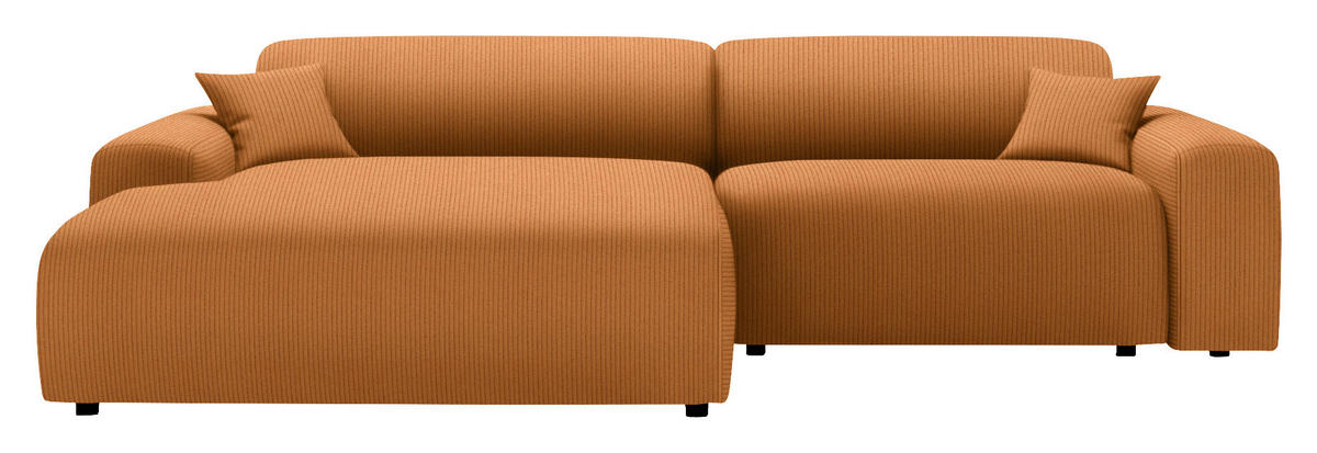 Ihr rostrotes Ecksofa mit Velours-Feincord-Bezug verführt dazu, behaglich die verdiente Me-Time zu genießen!