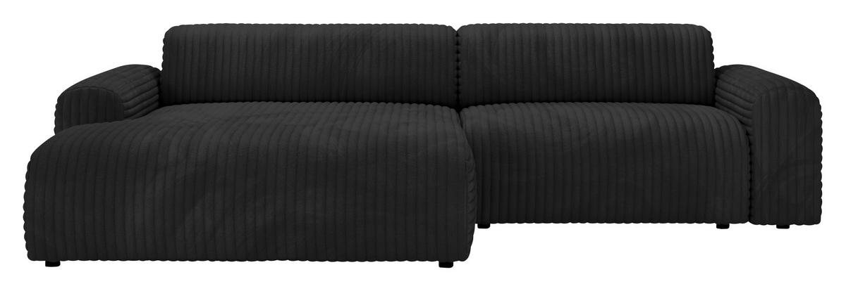 Wenn dieses schwarze Ecksofa mit Cord-Bezug bei Ihnen einzieht, dreht sich alles um Behaglichkeit!
