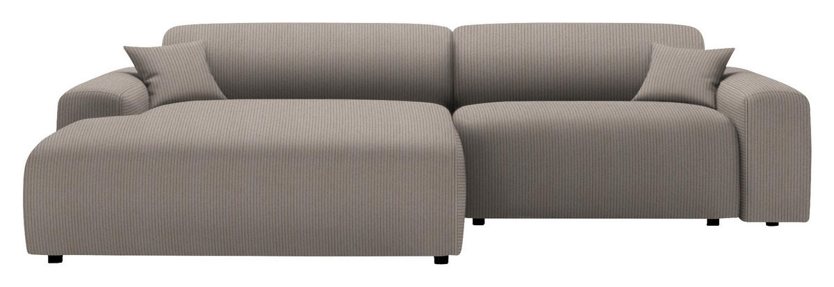 Genießen Sie Ihr Rendezvous mit der wohligen Unbeschwertheit des Seins auf diesem taupefarbenen Ecksofa mit Velours-Feincord-Bezug!
