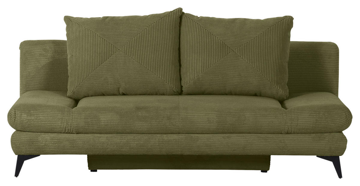 Genießen Sie Ihr Rendezvous mit der wohligen Unbeschwertheit des Seins auf diesem dunkelgrünen Schlafsofa mit Cord-Bezug!