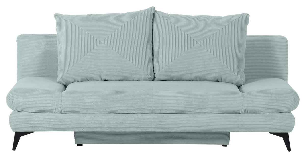 Ihr Aushängeschild, was Wohnlichkeit anbelangt: ein mintgrünes Schlafsofa mit Cord-Bezug, das es in sich hat!