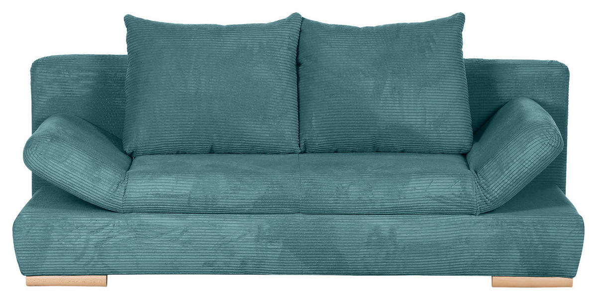 Rein in die Komfortzone: Dieses türkise Schlafsofa mit Cord-Bezug entführt Sie auf ein traumhaftes Terrain zum geruhsamen Durchatmen!