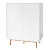 - Besonderheiten: Gestell aus massiver Eiche; pflegeleichte, kratz- und stoßfeste Oberfläche durch Melaminharzbeschichtung; Einlegeböden 3-fach verstellbar.