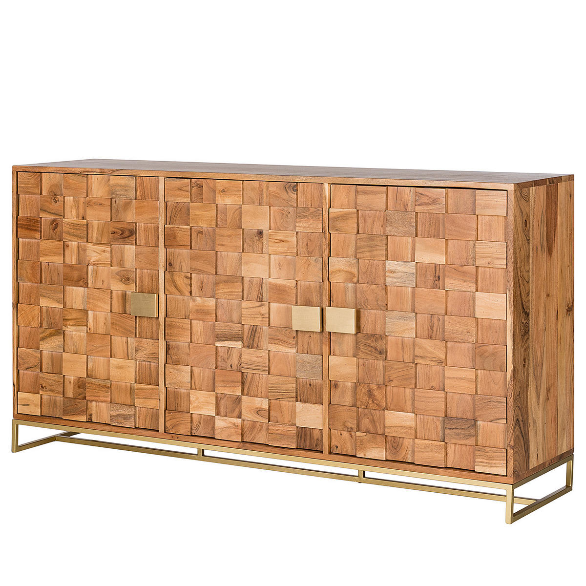 SIDEBOARD - Akazie massiv / Eisen - Goldfarben/Akaziefarben, Holz/Metall (160/85/40cm) - home24