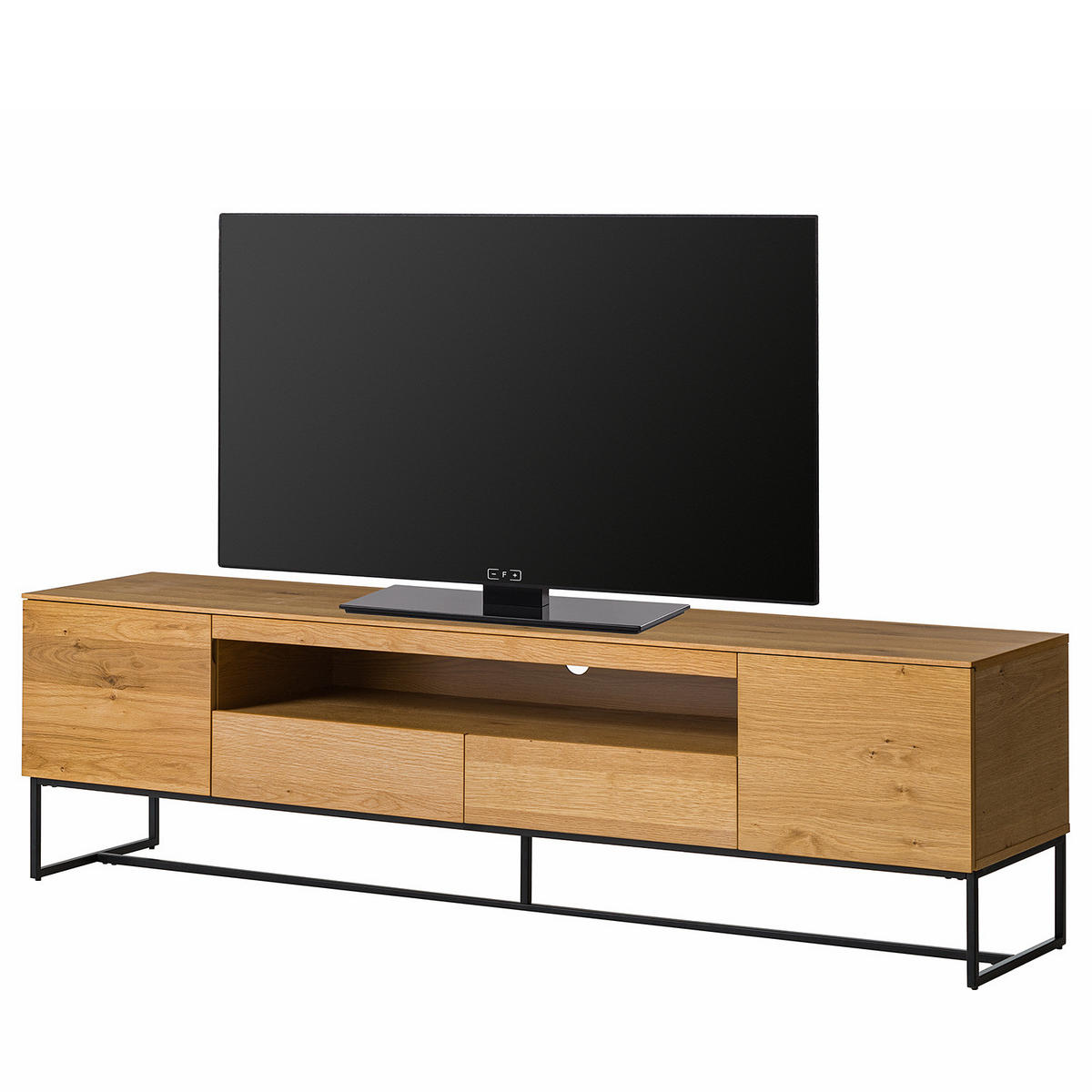 TV-LOWBOARD - Echtholzfurnier / Eisen - Breite 181 cm - Eichefarben/Schwarz, Holzwerkstoff/Metall (181/51/40cm) - home24