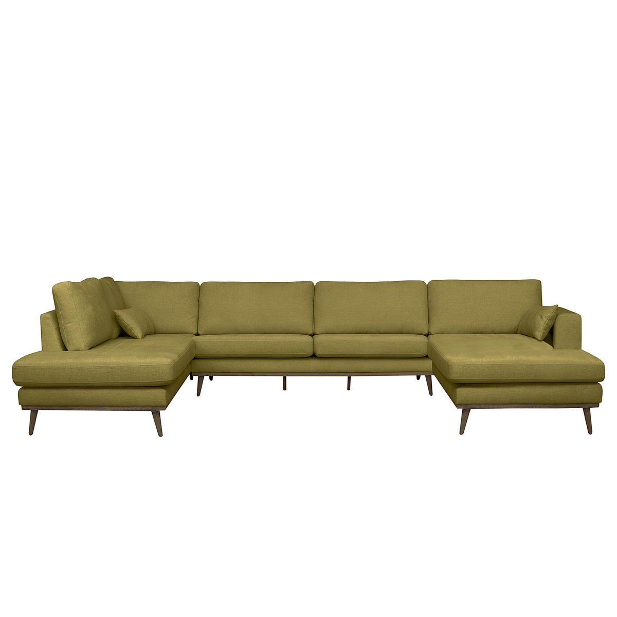 WOHNLANDSCHAFT mit Longchair - Eichefarben/Olivgrün, Eichenholz/Holz (371/81/219cm) - home24