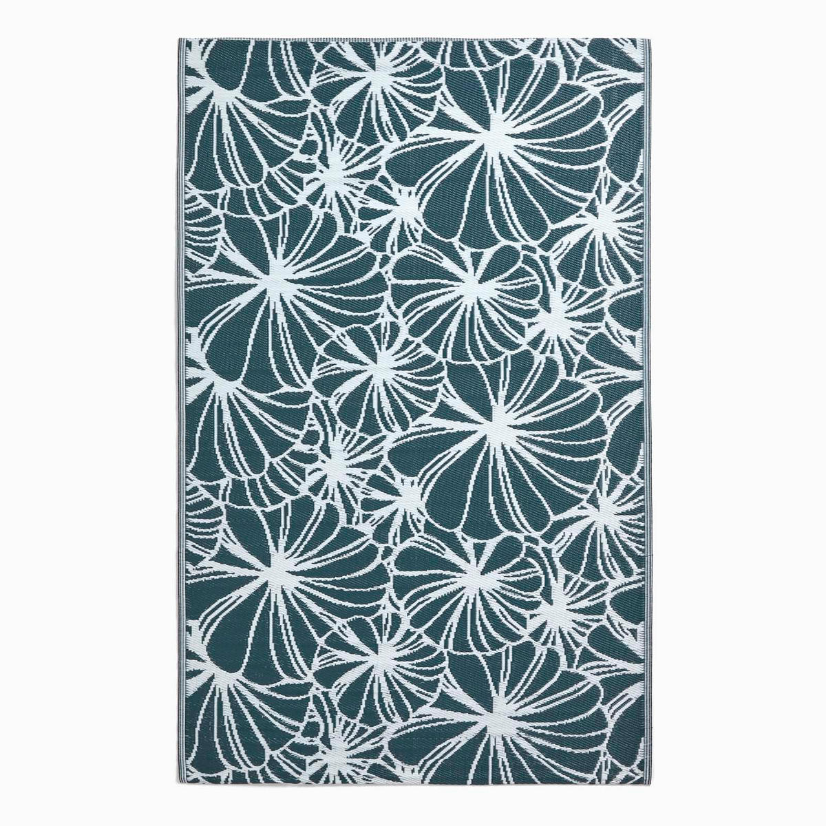 Outdoor-Teppich dunkelgrün – wetterfest mit Blütenmuster
