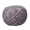 Erhältlich in zwei Größen – B 40 x H 35 cm und B 50 x H 40 cm – und in fünf stilvollen Farben, ist der Pouf vielseitig einsetzbar, sei es als Sitzgelegenheit, Fußablage oder stylisches Deko-Highlight. Dank seines charmanten Makramee-Musters fügt sich dieser Pouf harmonisch in moderne wie auch klassische Wohnstile ein und verleiht jeder Einrichtung ein natürliches, gemütliches Flair.