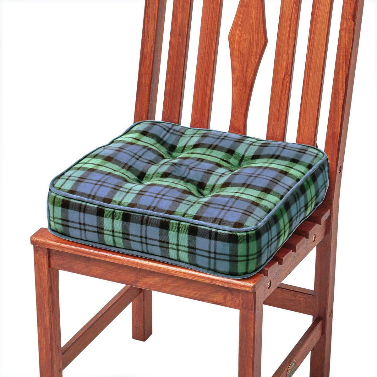 Homescapes SITZKISSEN blau-grün kariert 40/40/10 cm - Stuhlkissen Baumwolle