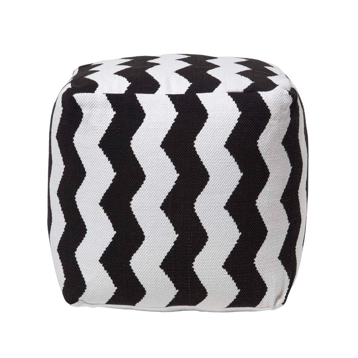 Moderne Poufs mit auffälligem Zickzack-Muster – vielseitig einsetzbar als bequeme Fußablage, zusätzliche Sitzgelegenheit oder stilvolles Deko-Element. Das markante schwarz-weiße Design verleiht jedem Raum eine trendige, dynamische Note und fügt sich problemlos in verschiedene Einrichtungsstile ein. Der Baumwollbezug sorgt für ein angenehmes, natürliches Gefühl.