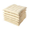 Unsere Sitzkissen sind aus 100 % Baumwolle gefertigt und mit einer langlebigen und bequemen Faserfüllung versehen Das handgemachte Stepp-Design sorgt für einen hochwertigen, strukturierten Look. Statt herkömmlicher Schleifen haben die Stuhlkissen von Homescapes einen praktischen Knopfverschluss, der für sicheren Halt und eine aufgeräumte Optik sorgt.