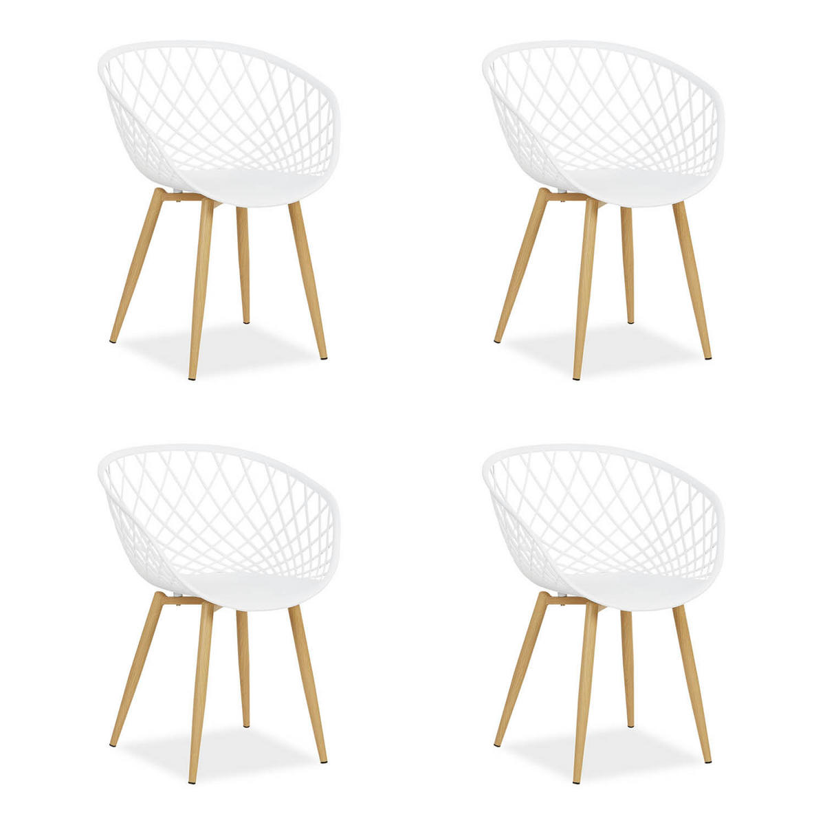 Diese weißen Stühle verleihen jedem Raum eine elegante Leichtigkeit. Mit ihrem filigranen Gitterdesign wirken sie fast schwebend, während die stabilen Beine in Holzoptik eine warme, natürliche Basis schaffen. Die Outdoor Stühle sind mehr als nur Sitzgelegenheiten – sie laden dazu ein, den Moment zu genießen.