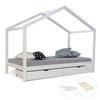 Homestyle4u HAUSBETT mit Matratze mit Stauraum 90/200 cm Weiß