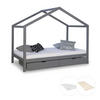 HAUSBETT 120/200 cm und 120/190 cm Weiß mit Rollbett und Dach mit Kaminleiste aus Kiefer+MDF