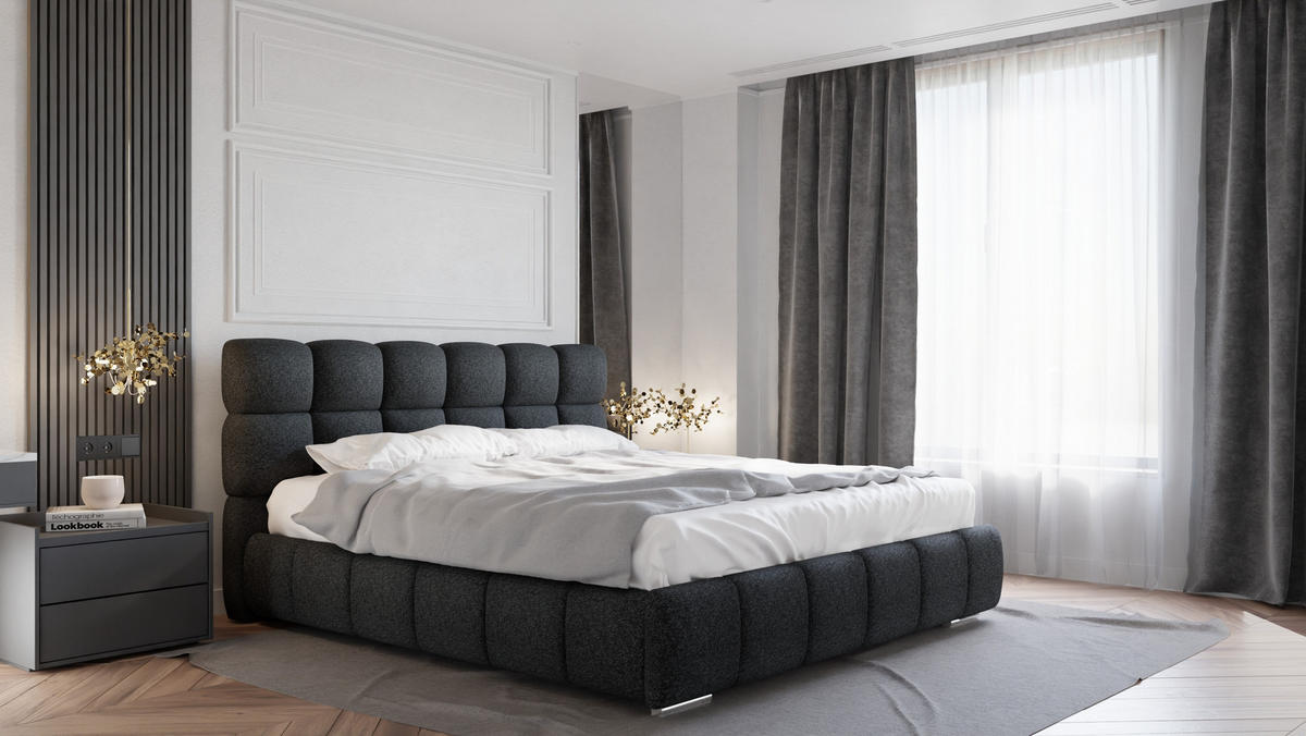 Homesy POLSTERBETT Bliss 180 x 200 cm mit Bettkasten und Lattenrost, Taschenfederkernmatratze 19cm - schwarz