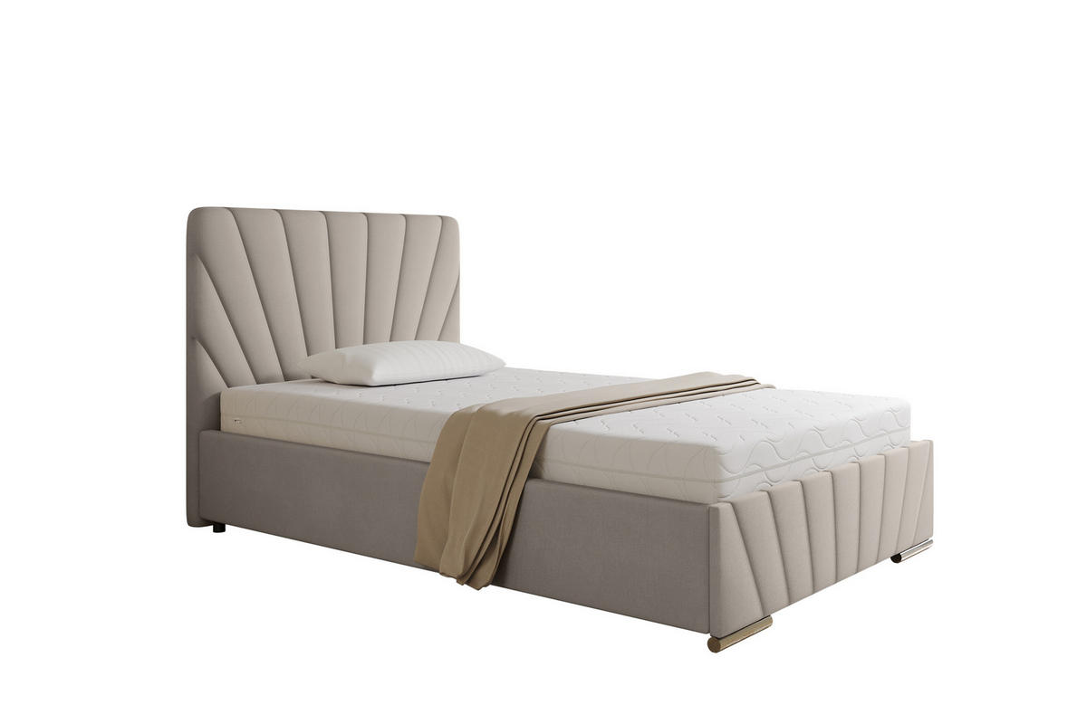 POLSTERBETT RAY – MODERNES DESIGN, KOMFORT UND FUNKTIONALITÄT Das Polsterbett RAY vereint modernes Design, hohen Komfort und praktische Funktionalität. Es ist die perfekte Wahl für alle, die Eleganz mit Alltagstauglichkeit verbinden möchten. Mit seinem einzigartigen, fächerförmig gepolsterten Kopfteil verleiht es dem Schlafzimmer einen stilvollen und luxuriösen Charakter. Die sorgfältige Verarbeitung und die weiche Stoffoberfläche sorgen für einen eleganten Look und ein angenehmes Gefühl. Technische Daten: