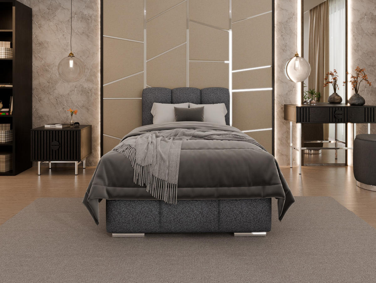 Homesy POLSTERBETT Zaira 90x200cm – Elegantes Polsterbett für modernen Wohnstil , ZONIERTE TASCHENFEDERN KOKOS (21cm), Graphitfarben