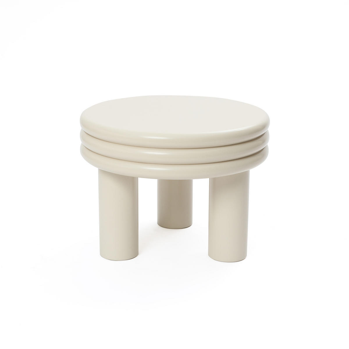 Moderner Beistelltisch mit funktionalem und künstlerischem Design – Die verstärkte, abgerundete Tischplatte wirkt weich und harmonisch und schafft eine behagliche Atmosphäre im Wohnraum. Die markanten Tischbeine sorgen nicht nur für eine stabile Standfestigkeit, sondern verleihen dem Möbelstück zugleich eine spielerische, kunstvolle Note. Dank der glanzvollen Lackoberfläche ist der Tisch leicht zu reinigen, strahlt eine helle Eleganz aus und fügt sich mühelos in verschiedene Einrichtungsstile ein.