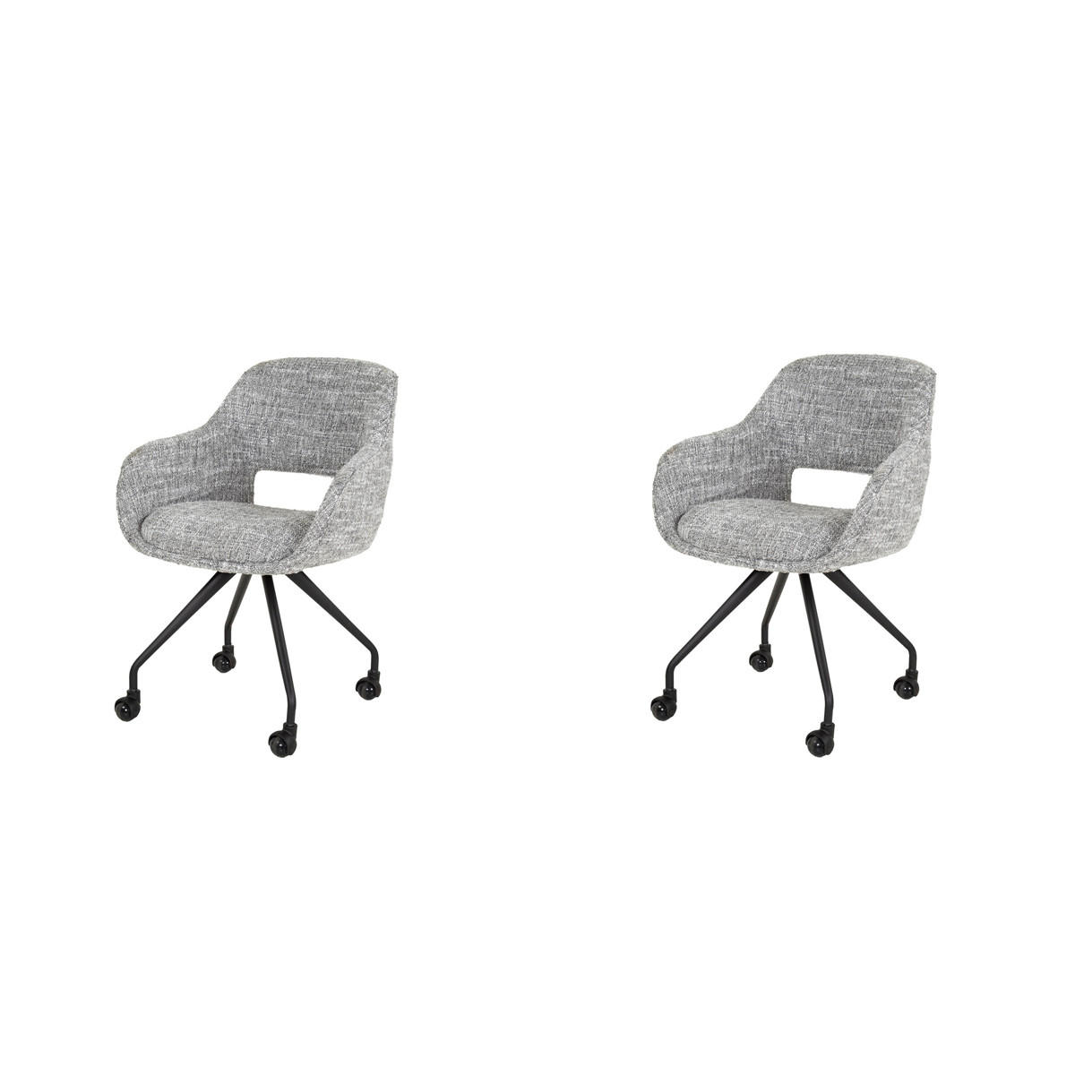 Dieser luxuriöse Stuhl kombiniert ein schwarzes Metallgestell mit einem stilvollen Stoff und vereint so Komfort und Eleganz. Dieser Stuhl verleiht jedem Raum eine elegante Note und verfügt über hochfunktionale Rollen. Der Stuhl ist in drei verschiedenen Farben erhältlich und verfügt auch über eine Version ohne Rollen (Artikel 4981). Der Stuhl ist zu zwei Teilen verpackt.