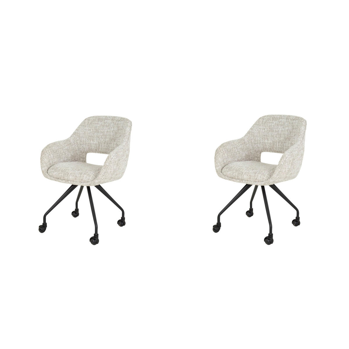 Dieser luxuriöse Stuhl kombiniert ein schwarzes Metallgestell mit einem stilvollen Stoff und vereint so Komfort und Eleganz. Dieser Stuhl verleiht jedem Raum eine elegante Note und verfügt über hochfunktionale Rollen. Der Stuhl ist in drei verschiedenen Farben erhältlich und verfügt auch über eine Version ohne Rollen (Artikel 4981). Der Stuhl ist zu zwei Teilen verpackt.