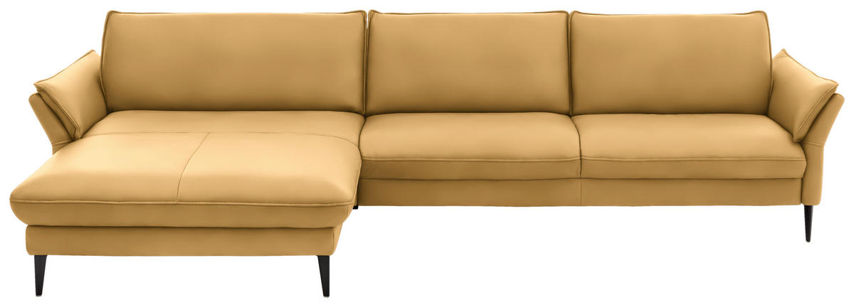Absolut sehenswert Wer sich für Kreationen aus dem Hause HUKLA entscheidet, darf sich auf beste Verarbeitung, kompromisslose Qualität und zeitgemäße Entwürfe samt individueller Note freuen. Die lebhafte Farbgebung in Gelb verleiht dem Polstermöbel eine harmonische Optik und fügt sich schick in verschiedene Einrichtungstrends ein. Die hohen Winkelfüße aus poliertem Aluminium in Schwarz sehen stylish aus und gewährleisten gleichzeitig einen stabilen Stand.
