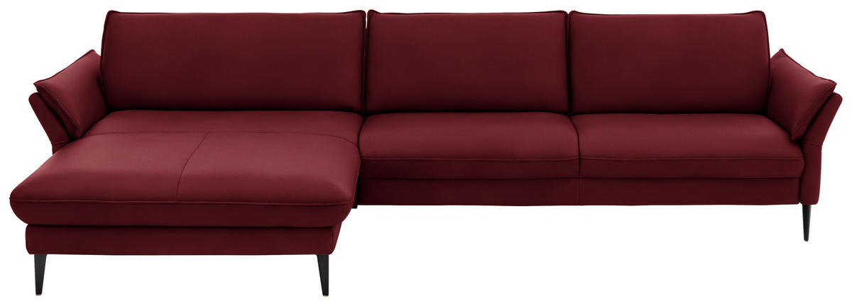 Im Lieferumfang enthalten: Genießen Sie Ihr Rendezvous mit der wohligen Unbeschwertheit des Seins auf diesem roten Ecksofa von HUKLA mit Leder-Bezug!