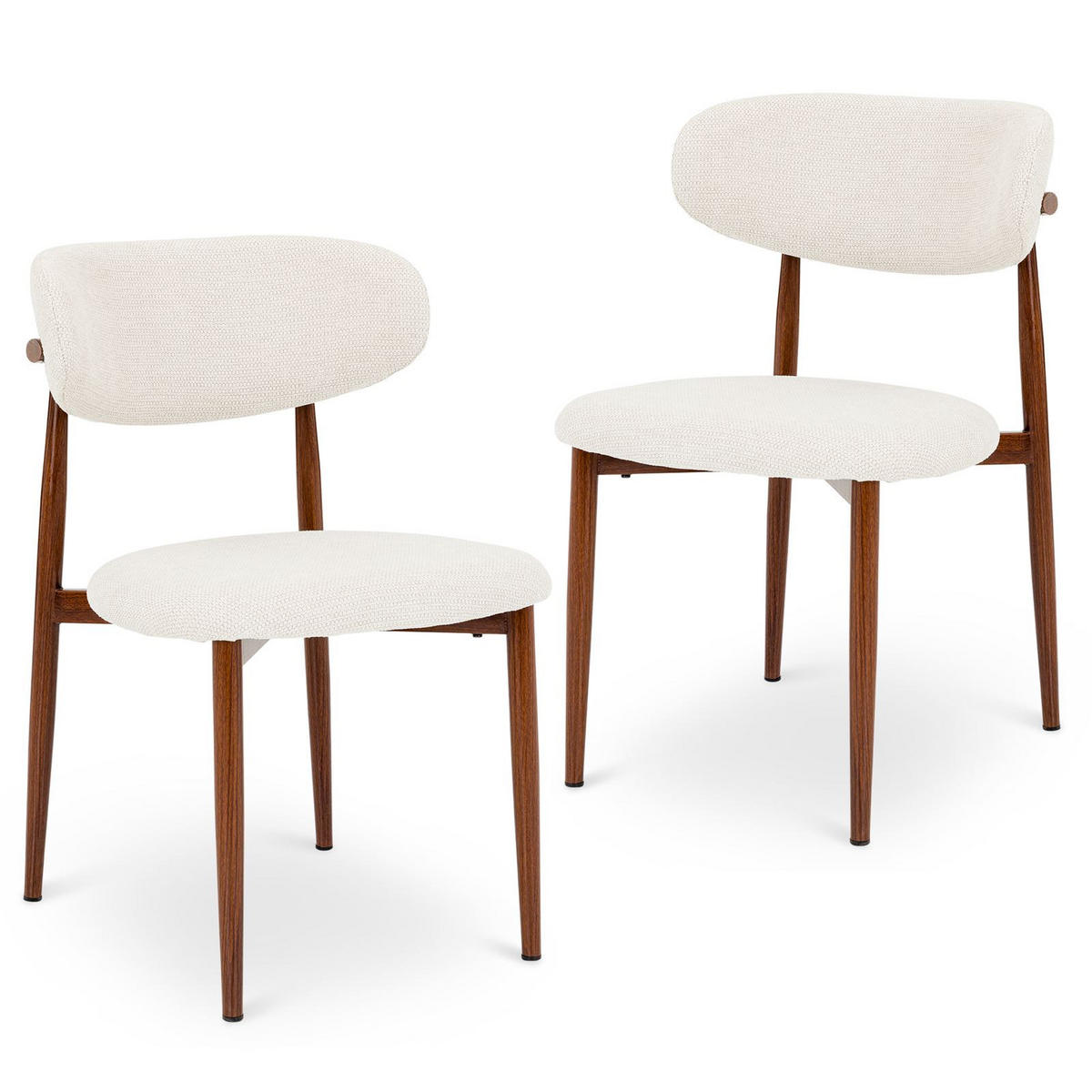 Esszimmerstuhl ACOSTADer Esszimmerstuhl ACOSTA überzeugt mit seiner modernen, zeitlosen Silhouette. Der weiche Stoffbezug in Weiß sorgt für hohen Sitzkomfort, während das Metallgestell, veredelt durch Thermotransferdruck in dunkler Holzoptik, Stabilität und Langlebigkeit garantiert. Der pflegeleichte Stoffbezug ist angenehm im Alltag. Dank seiner eleganten Form fügt sich der Stuhl harmonisch in verschiedene Einrichtungsstile ein – ob im Esszimmer, in der Küche oder im Wohnbereich. Belastbar bis 120 kg.Materialbeschreibung:
