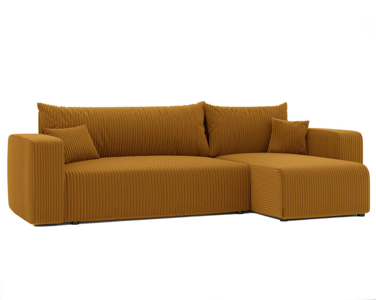 Schlafcouch mit Bettkasten: Das Sofa verfügt über eine praktische Schlaffunktion, mit der es sich in ein komfortables Bett in der Größe von 200x125cm verwandeln lässt. Zudem besitzt das Ecksofa es einen integrierten Bettkasten für die praktische Aufbewahrung von Bettwäsche oder anderen Utensilien.